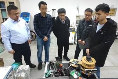 会后参观了寇子明创新工作室的实验室,实验室内摆放有矿井自动排水模拟系统、示波器、摩擦磨损试验设备等实验设备,智能健身单车、巡检机器人等学生科技竞赛作品以及研究生课题实验作品等。