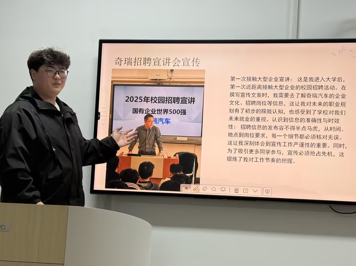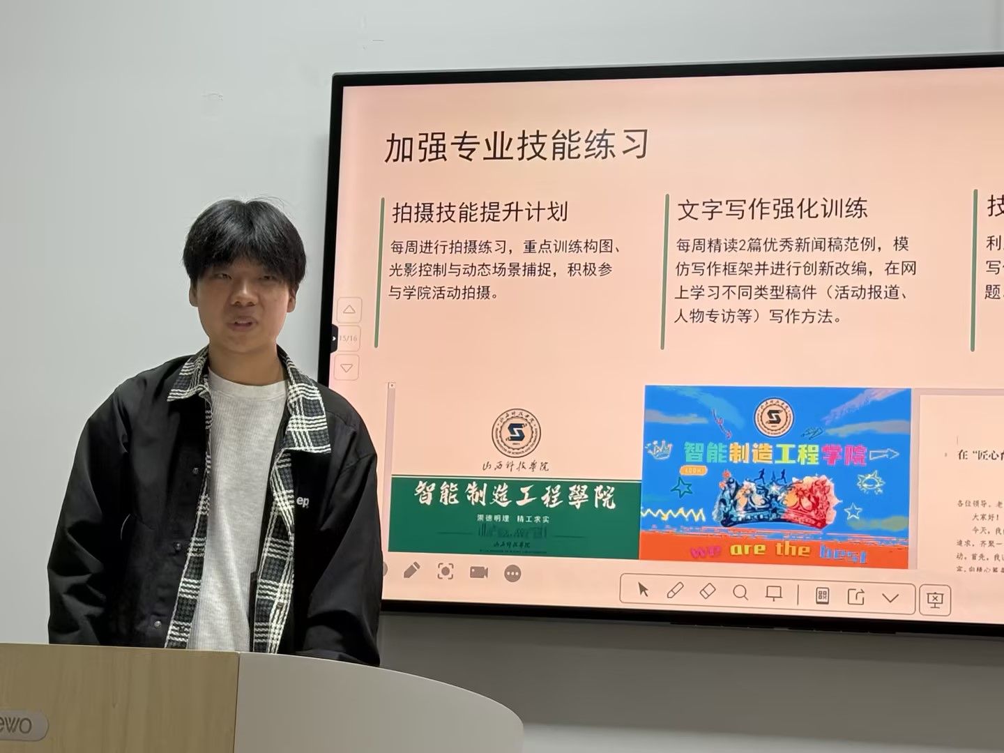 在干事述职环节,各部门干事依次登台,结合 PPT 演示,从思想建设、工作实践、活动组织及未来规划等方面进行全面汇报。大家以翔实的工作案例复盘日常工作,分享了在实践中的成长与感悟,既坦诚展现了岗位工作的收获与成果,也勇于直面自身存在的沟通效率不足、服务覆盖不全面等问题。各位学生骨干深刻剖析自身短板,并结合岗位特点制定了具体的改进计划与成长目标,充分展现出学生骨干求真务实、锐意进取的良好精神风貌。