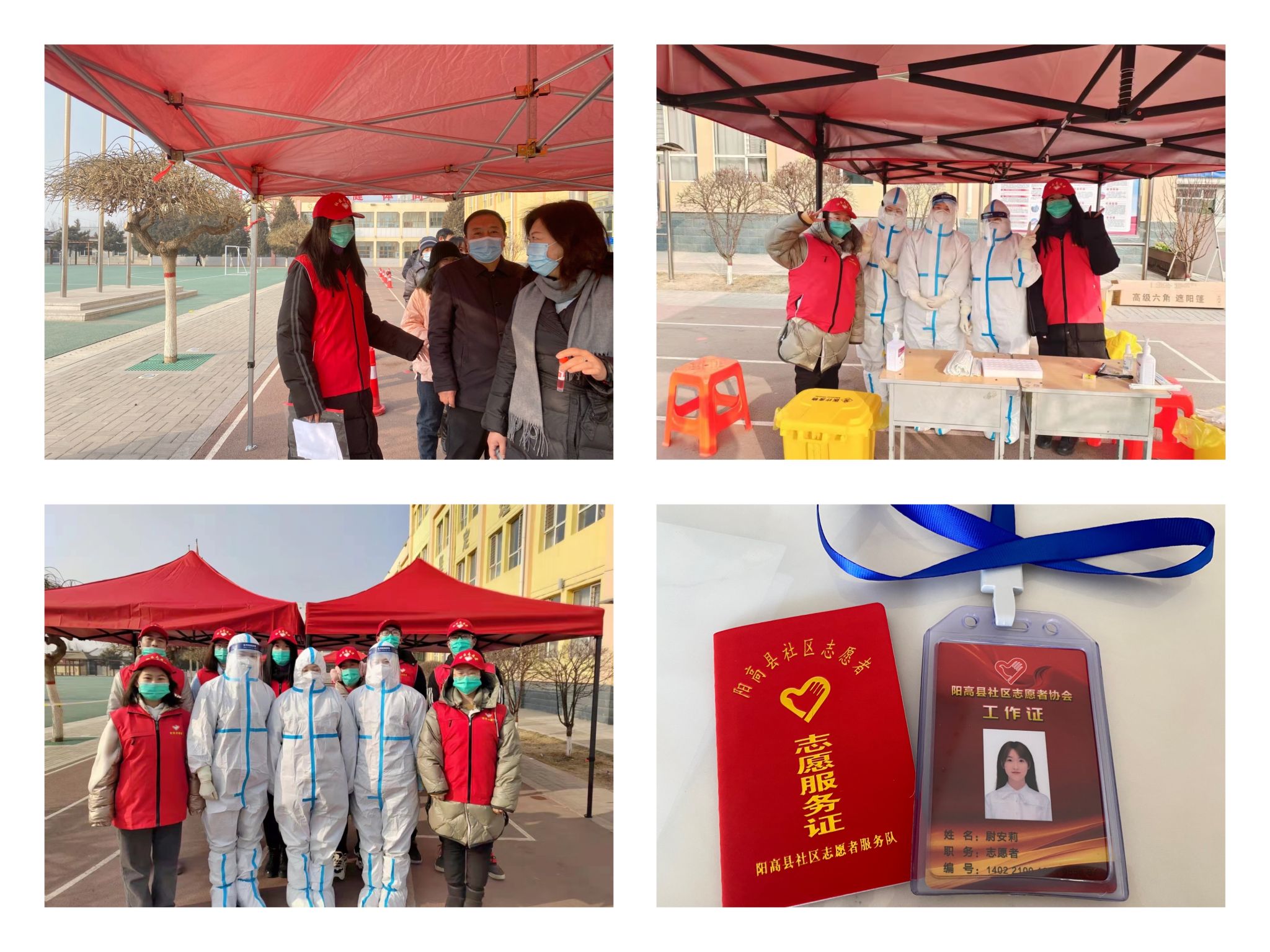 2022年初我国多地出现确诊病例,疫情联防联控工作变得尤为重要。疫情面前没有旁观者,疫情防控没有局外人。作为一名青年大学生,她看到当地的一线医护人员工作强度极大,决定担起自身的责任和义务,去做一些力所能及的事情。于是她快速响应学校号召,积极联系当地团委,自愿加入大同市阳高县的社区志愿者协会,参加了长达一周的疫情防控志愿活动,为自己土生土长的地方贡献一份绵薄之力。