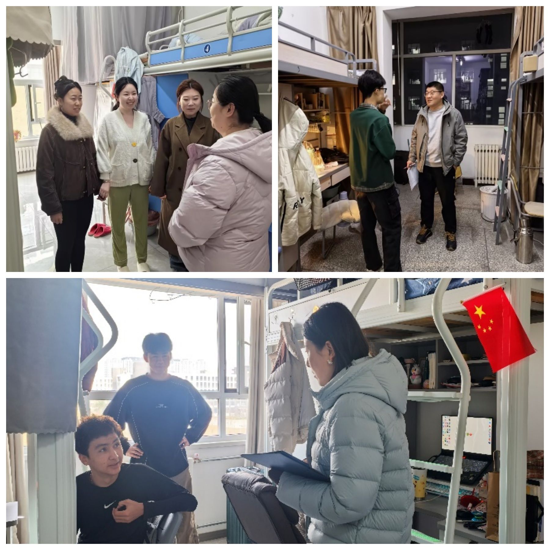 在走访过程中,辅导员们与同学们亲切交谈,仔细询问大家假期生活、返校行程及身体状况,重点了解宿舍设施使用、安全隐患排查等与学生切身利益相关的问题。针对同学们提出的学习规划、生活困难等问题,辅导员们耐心解答、悉心指导,并叮嘱大家尽快调整状态,以饱满的热情投入到新学期的学习生活中。