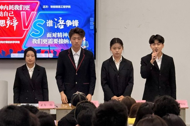 我院作为正方,持“面对精神内耗,我们更需要接纳自己” 观点。辩手们引经据典、条理清晰,以扎实的理论支撑与流畅的语言表达,层层推进论证,在攻防转换中展现出极强的思辨能力与团队默契。反方辩手同样思路敏捷、言辞犀利,双方你来我往、妙语连珠,为现场观众呈现了一场高质量的思辨盛宴。